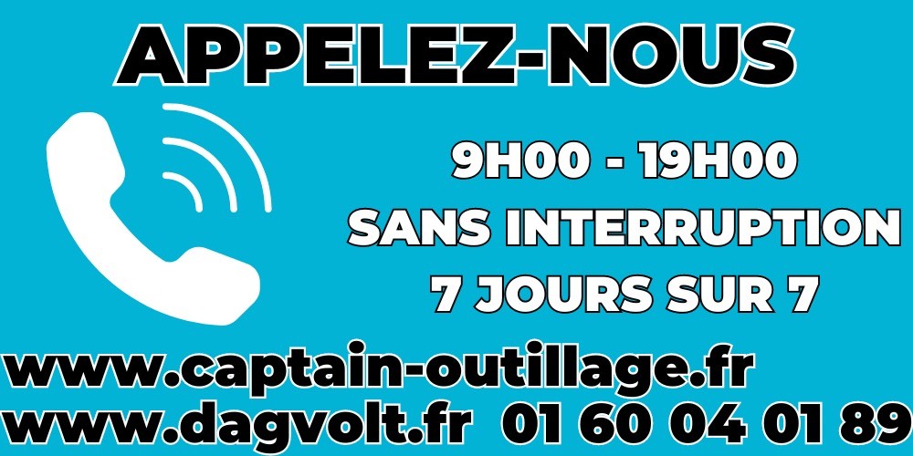 Vous pouvez nous contacter par e-mail à contact@dagvolt.fr ou par tchat et téléphone 7j/7 de 9h à 22h au 01 60 04 01 89.
